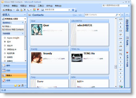 经常(包括不得不)使用Outlook来进行GTD、收发邮件或者管理PIM,但又喜爱Google Calendar、Gmail的用户有福了,KiGoo是一个Outlook附加软件,它可以让你在Outlook上实时查看、管理你的Gmail联系人以及Google Calendar。